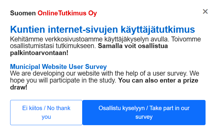 Kuopion kaupungin verkkosivujen käyntikokemusta selvitetään kyselyllä