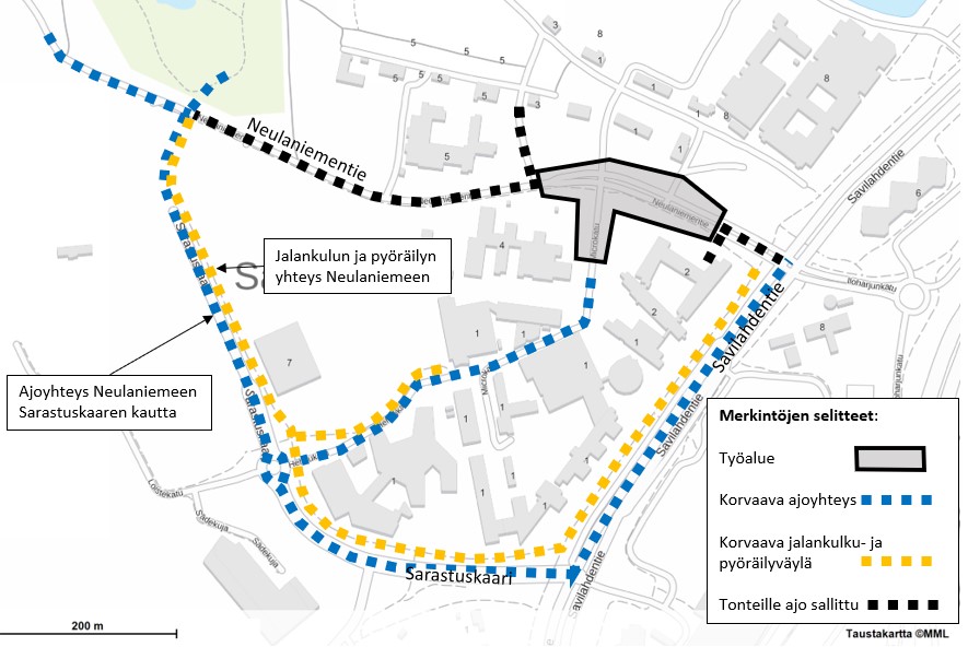 Rakentamisen aikana Neulaniementien ja Microkadun liittymään rakennetaan uusi kiertoliittymä. Työalueelle rakennetaan myös uusi silta ja saneerataan katua sekä jalankulku- ja pyöräilyväyliä.