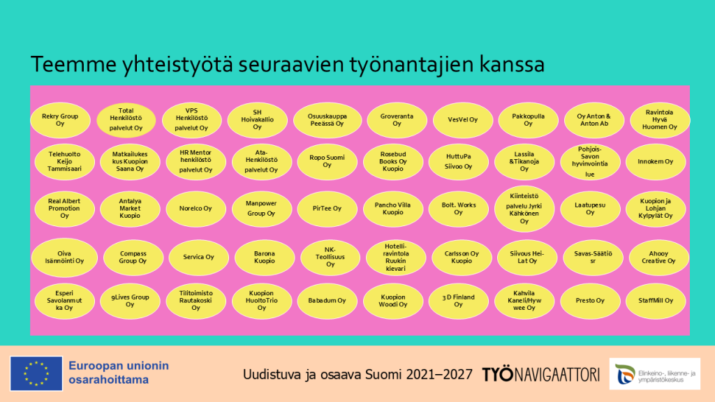 Teemme yhteistyötä seuraavien työnantajien kanssa