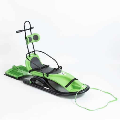 - Kelkan takana on irrotettava, jarrulla varustettu jalasosa, jolta kelkkaa on mahdollista potkutella potkukelkan tapaan ja käyttää avustajan seisomalautana loivaa mäkeä laskettaessa.
